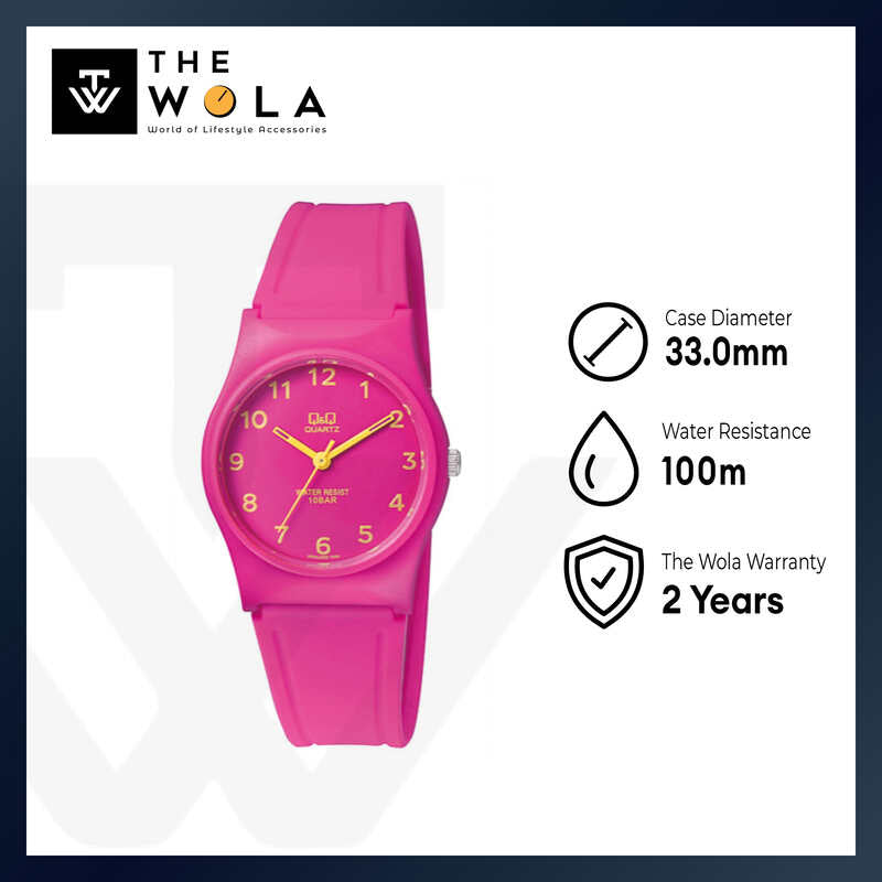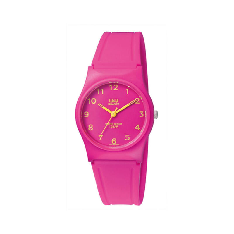 Q&Q Watch by Citizen VP34J069Y Unisex Analog Watch with Pink Rubber Strap