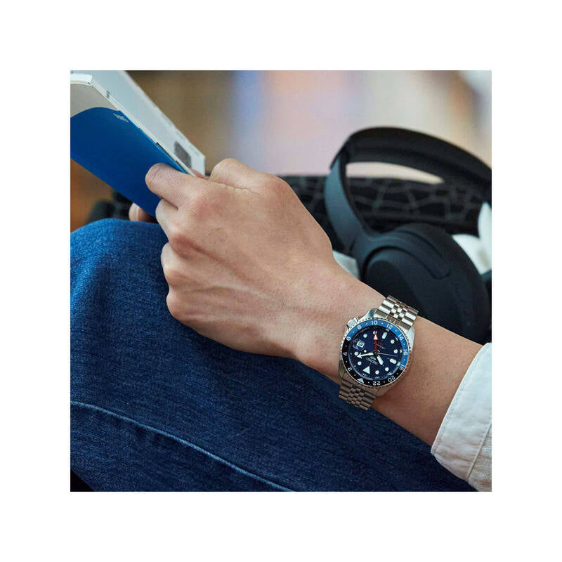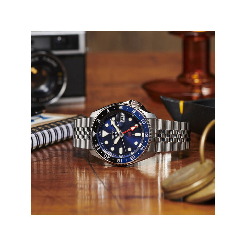 Seiko 5 Sports GMT SSK003K1 Automatic Men's Watch | Blue Dial with Silver Stainless Steel Band