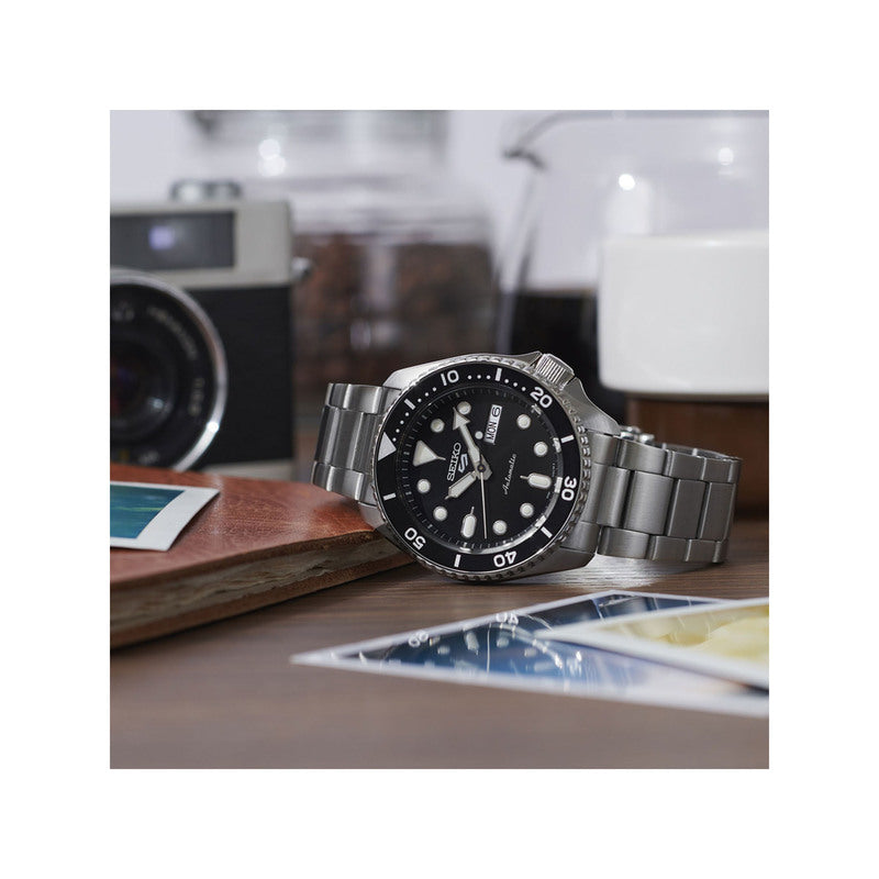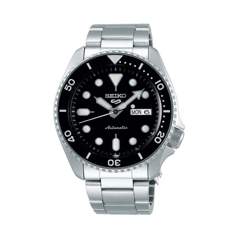 Seiko 5 Sports SRPD55K1 Superman Automatic Men's Watch | Black Dial with Silver Stainless Steel Bracelet