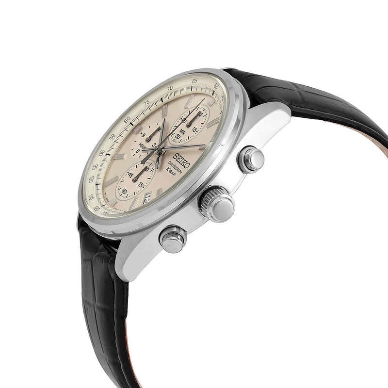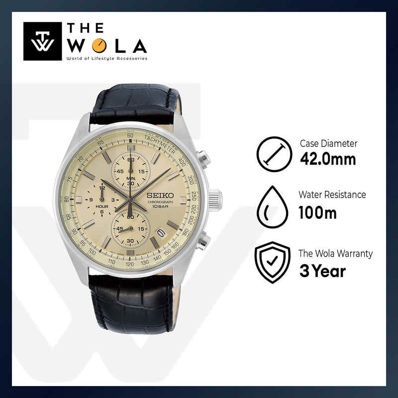 Seiko SSB383P Men's Chronograph Watch Black Calfskin Strap - Tachymeter Quartz Watch